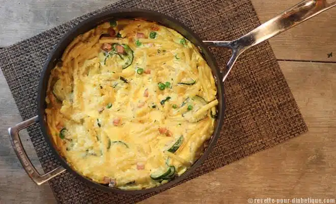 Une Frittata aux macaroni, petits-pois et courgette fondante et craquante !